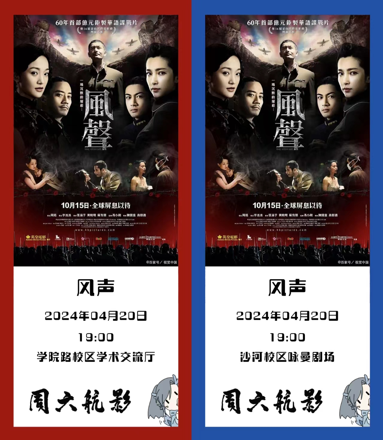 4月20日(周六)19:00,学院路校区学术交流厅,沙河校区咏曼剧场,同步放映!