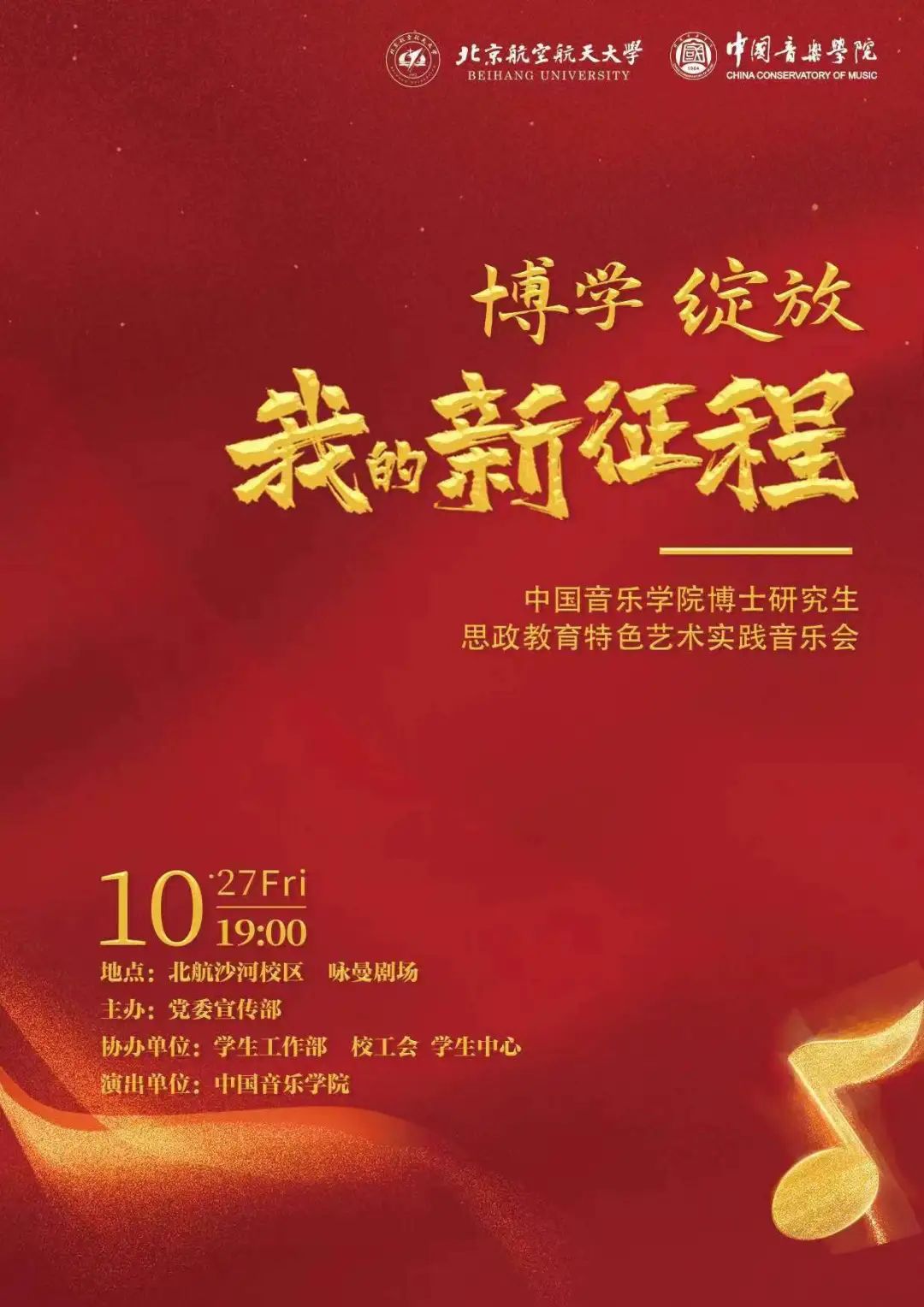 10月27日(周五)19:00,在沙河校区咏曼剧场,中国音乐学院与你,盛情相会,不见不散!