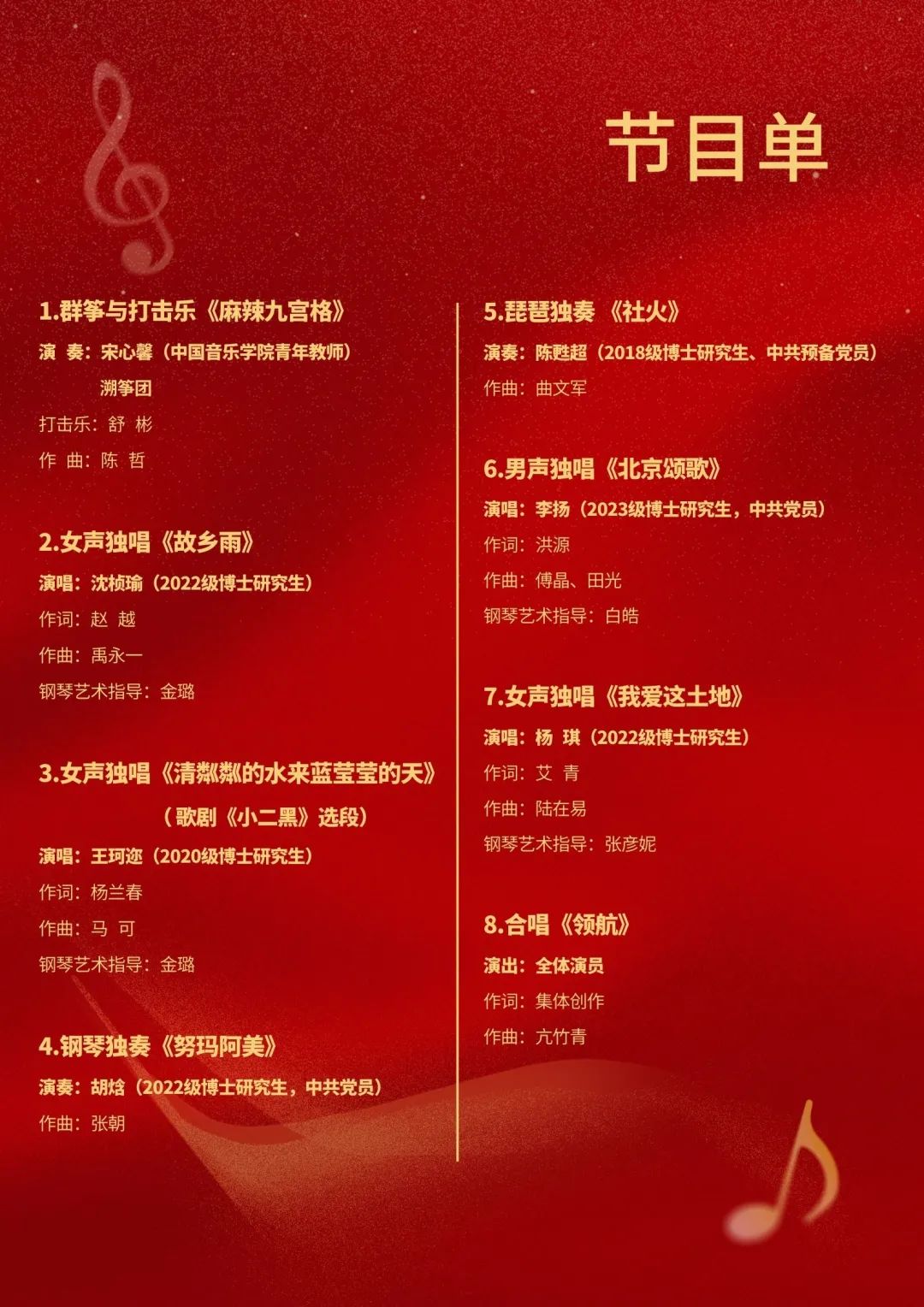 正值全国学习宣传贯彻党的二十大精神和学习贯彻习近平新时代中国特色社会主义思想主题教育的热潮中,中国音乐学院2位青年教师和党委研工部直属博士生班的7名博士研究生,在“博学 绽放”研究生思想政治教育品牌的策划下,结合个人学习、工作、生活、成长等经历,演出一场以“我的新征程”为主题的博士研究生思政教育特色艺术实践音乐会,开设一堂践行习近平总书记勉励青年一代“立大志、明大德、成大才、担大任”经典语录的生动思政教育实践课。音乐会以“聆听经典语录 讲好我的故事 演好中国作品”为基本主线,以“导语——我的故事——作品” 为呈现方式,引领全体研究生在聆听新时代中国故事和中国作品中,深入学习习近平总书记经典语录,深刻感悟习近平新时代中国特色社会主义思想和党的二十大精神的精神内涵,汲取青春奋斗力量,让“我的新征程”在党的二十大精神的指引下扬帆启航!