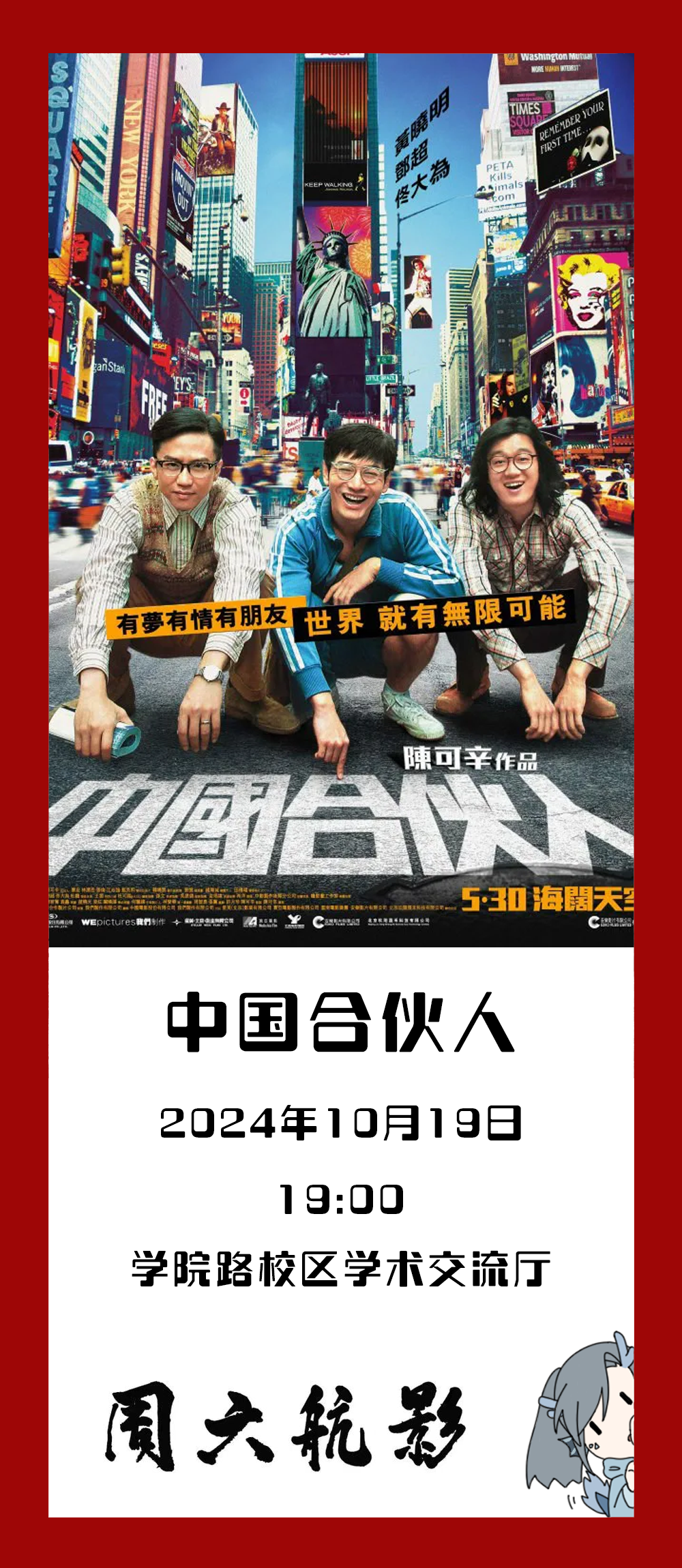 「周六航影」第六周让我们一起走进《中国合伙人》,走进三个挚友的创业旅程,看他们,从青涩懵懂到逆风飞扬