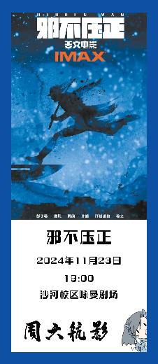 11月23日(周六)19:00,学院路校区学术交流厅、沙河校区咏曼剧场同步放映!