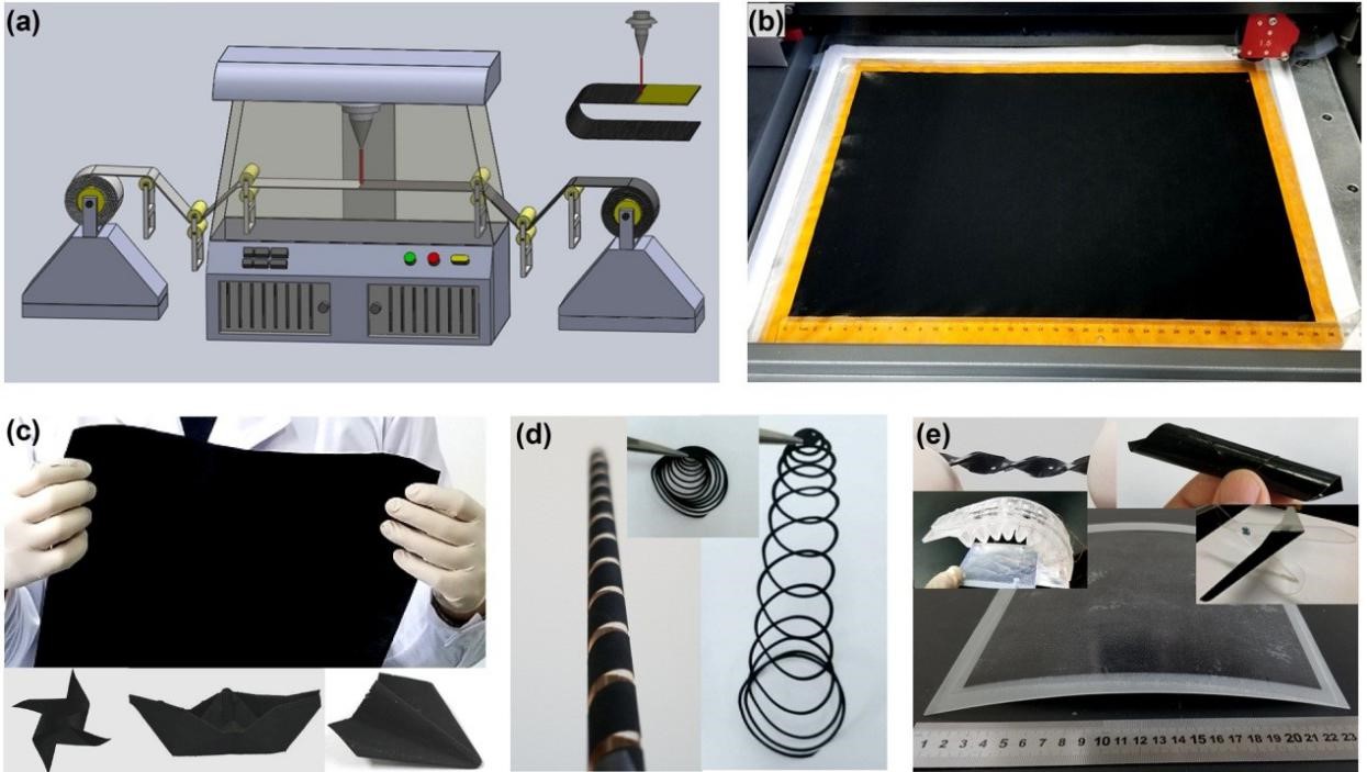 图1. 石墨烯纸的先进激光连续制造及多模式形态加工