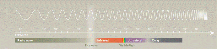 太赫兹电磁辐射波长位于微波与远红外光之间,频率范围覆盖0.1-30THz,,又被称为亚毫米波,是电磁波谱上还未被人类深入研究和开发,但极具学术价值和重要应用的一个频段。太赫兹波又被称为“生命射线”,不仅因为其特殊频段包含生命分子DNA和蛋白质的集体振动频率,还因为占人体70%的水所具有的氢键网络的动态时间也在皮秒量级(皮秒的倒数即为太赫兹)。