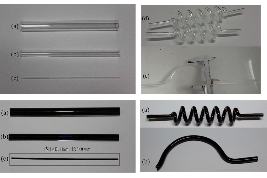 直管和异型石英管内壁沉积DLC薄膜前后对比图